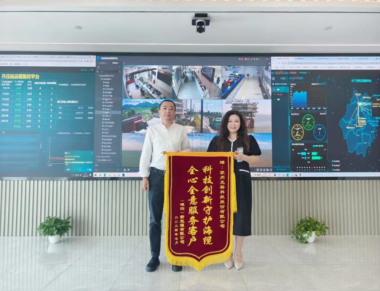 2024年7月,蘇州光格科技股份有限公司迎來(lái)了一份特殊的禮物——嵊泗風(fēng)電項目客戶(hù)贈送的錦旗,感謝光格科技為該項目海底電纜狀態(tài)監測提供的優(yōu)質(zhì)產(chǎn)品和服務(wù)。這面錦旗上寫(xiě)著(zhù)“科技創(chuàng )新守護海纜,全心全意服務(wù)客戶(hù)”,是對光格科技多年來(lái)在海纜行業(yè)持續創(chuàng )新和服務(wù)的肯定。