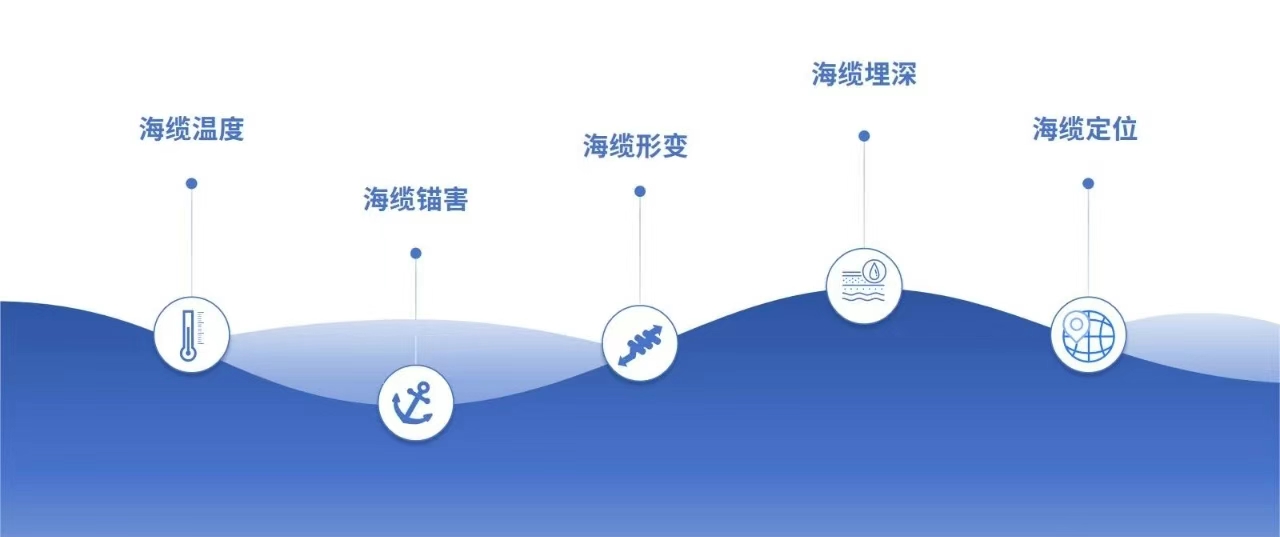 公司海纜資產(chǎn)監控運維管理系統基于自主研發(fā)的分布式光纖傳感器等核心設備,利用海底光電復合纜的內置光纖作為傳感和通信介質(zhì),實(shí)時(shí)監測和采集海纜的溫度、應變、擾動(dòng)、行波等數據,結合后臺信號處理、模式識別、多維數據融合學(xué)習算法,對海纜狀態(tài)異常、過(guò)熱、錨掛、暴露、沖刷等威脅進(jìn)行評估分析,及時(shí)給予提示和預警,該系統可有效保障海纜運行安全,對海洋能的開(kāi)發(fā)利用具有重要意義。