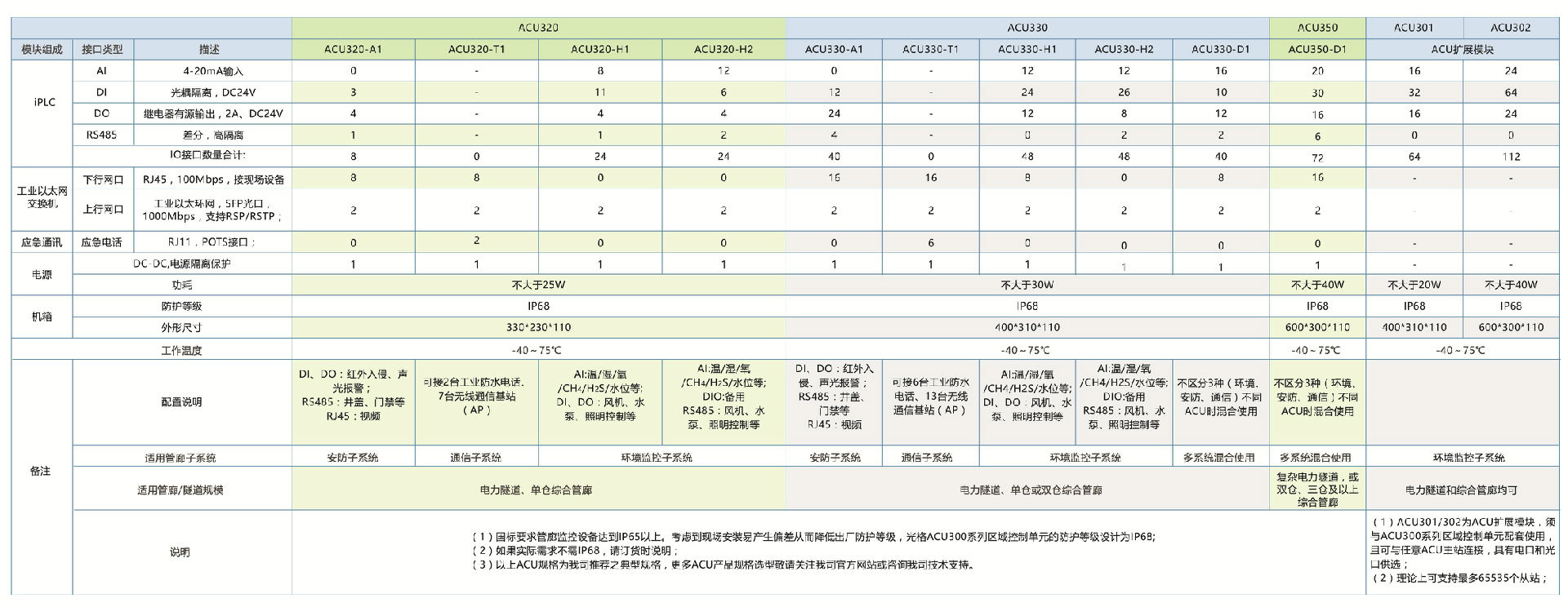 ACU300提供豐富的典型預配置,充分滿(mǎn)足單倉至五倉管廊/隧道的需求。